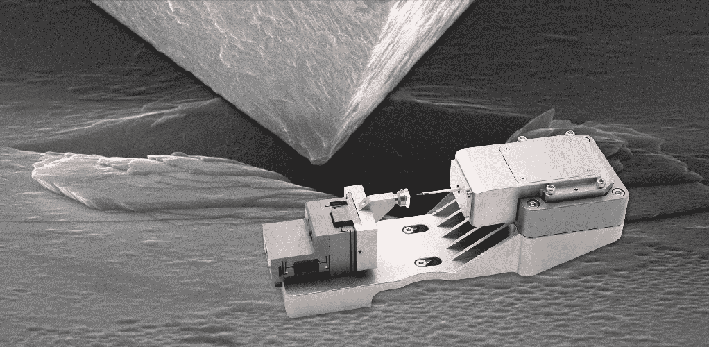 5.安裝于掃描電鏡中,可以精確施加載荷,檢測位移,在電鏡下做壓痕、拉伸、彎曲、壓縮測試;可以借助掃描電鏡的的高分辨率,觀測并記錄整個材料測試過程,觀測材料在力下發生的動態變化,如金屬蠕變、相變、斷裂起始等。該設備可以將材料的力學數據(載荷-位移曲線)與相應SEM視頻之間實現時間同步,可以在整個測試過程中極其精確地定位壓頭并對變形過程成像的同時,能準確得到定量的載荷和位移的數據。